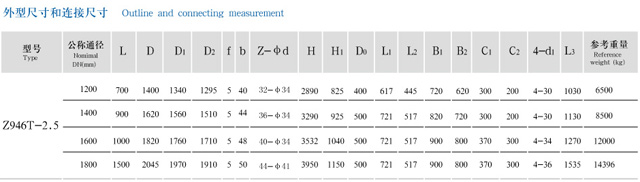 Z946T-2.5型暗桿楔式雙閘板閘閥